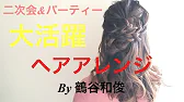 結婚式二次会やパーティーで使えるハーフアップアレンジです。 ハーフアップアレンジ ①頭頂部で小さなくるりんぱを作り、ほぐす。 ②右横の髪の毛をロープ網を作りながら後ろに ひっぱりくるりんぱの下あ...
